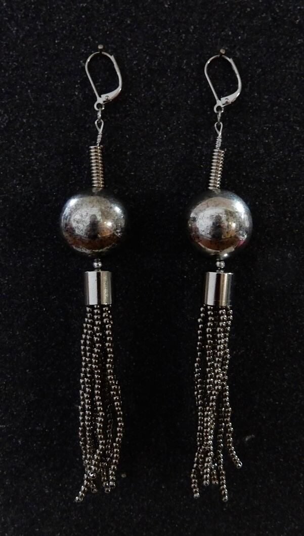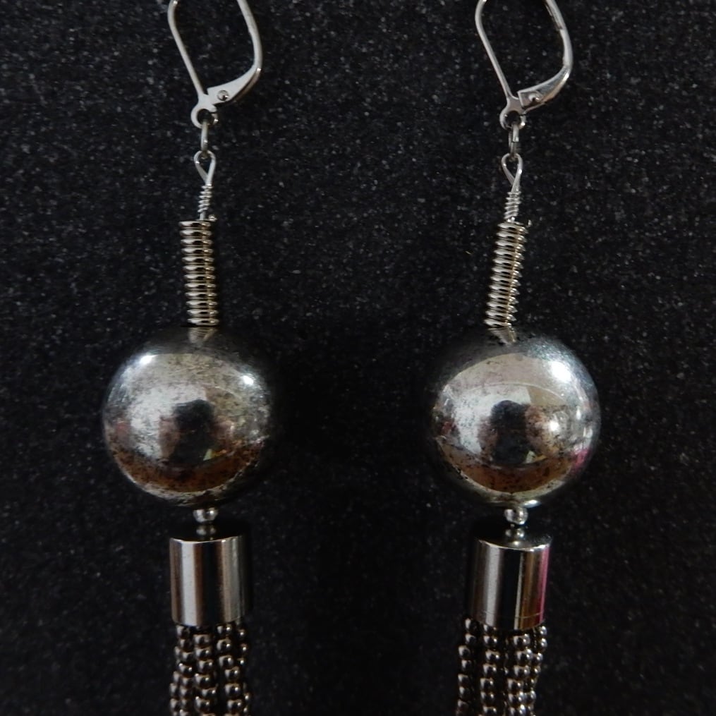 ボリューム感のあるメタルタッセルのピアス。