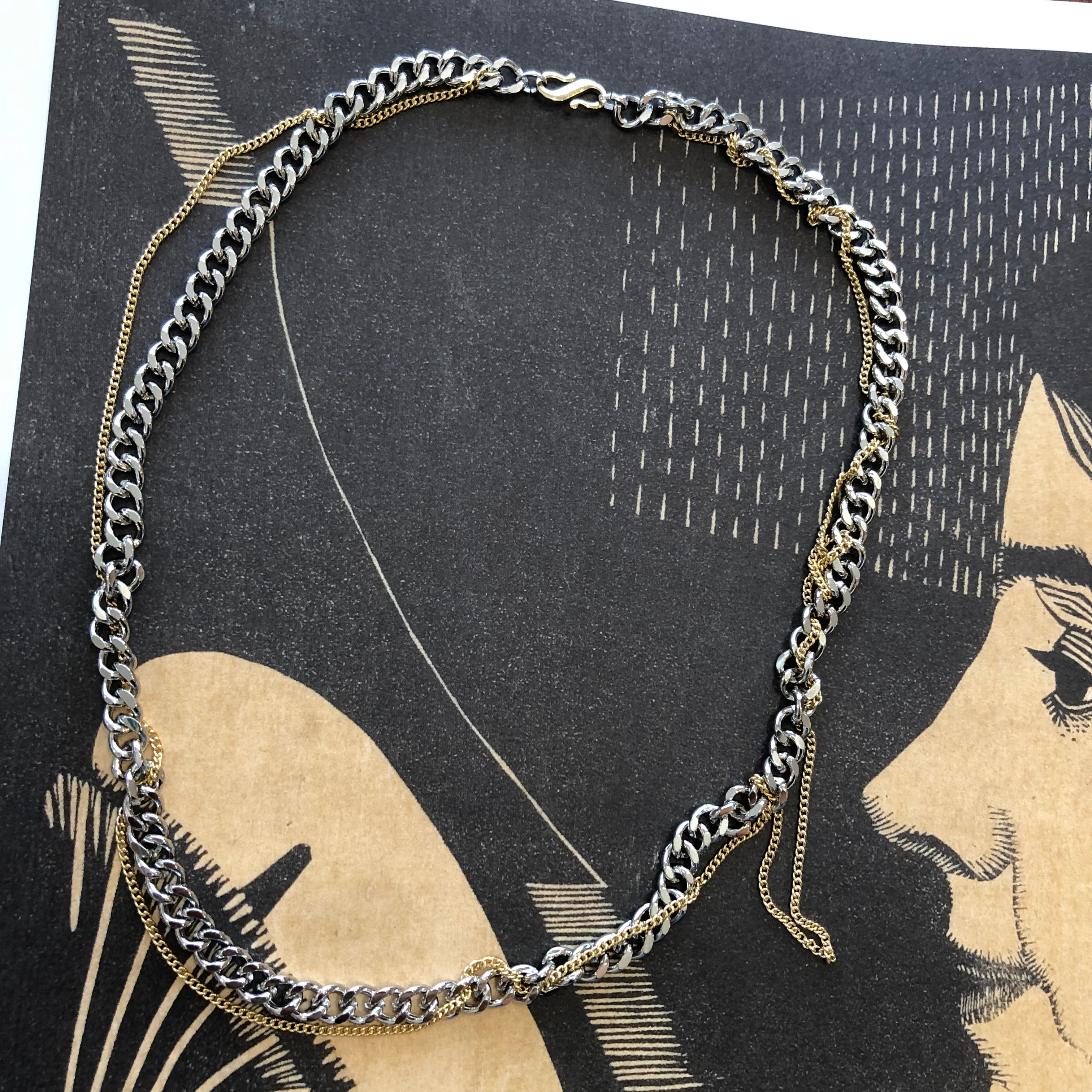 目を引くチェーンネックレス。